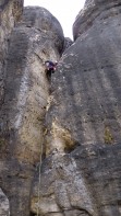 09.08.2004 08:20 | Mäßig breiter Kamin mit gleichmäßiger Schwierigkeit an zwei Knotenschlingen bis zur Plattform (Abseilring), dann kurzer, enger aber trittreicher Kamin zum Gipfel. Wofür der Weg sein Sternchen im Kletterführer bekommen hat bleibt unklar. | (Normal) |