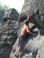 12.05.2006 14:58 | In Südseite (Plateau) auf Band nach links unterhalb des Ringes queren (gute SU), und rechts der SU über Bauch auf reibigen Absatz (R. klinken). An R. vorbei mogeln bis man die große Zacke erreicht. Vom Absatz der Rinne nochmal anspruchsvoller Reibungszug z.G. (vorher 2 wacklige Schlingen möglich). (15. Beg.) | + (gut) |